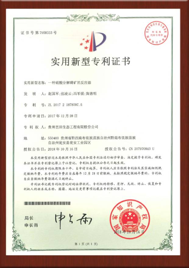 南宫28ng相信品牌力量-南宫ng28注册平台入口-南宫28在线登录-南宫28圈电脑版-南宫28在线注册网站-南宫集团加拿大28-南宫28相信品牌的力量链接-南宫28NG国际-南宫ng娱乐app下载冷冻法硝酸磷肥关键工艺技术:“一种硝酸分解磷矿溶液纯化的方法”发明专利荣获第二十二届中国专利奖优秀奖。