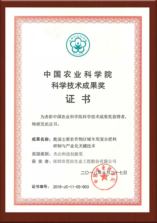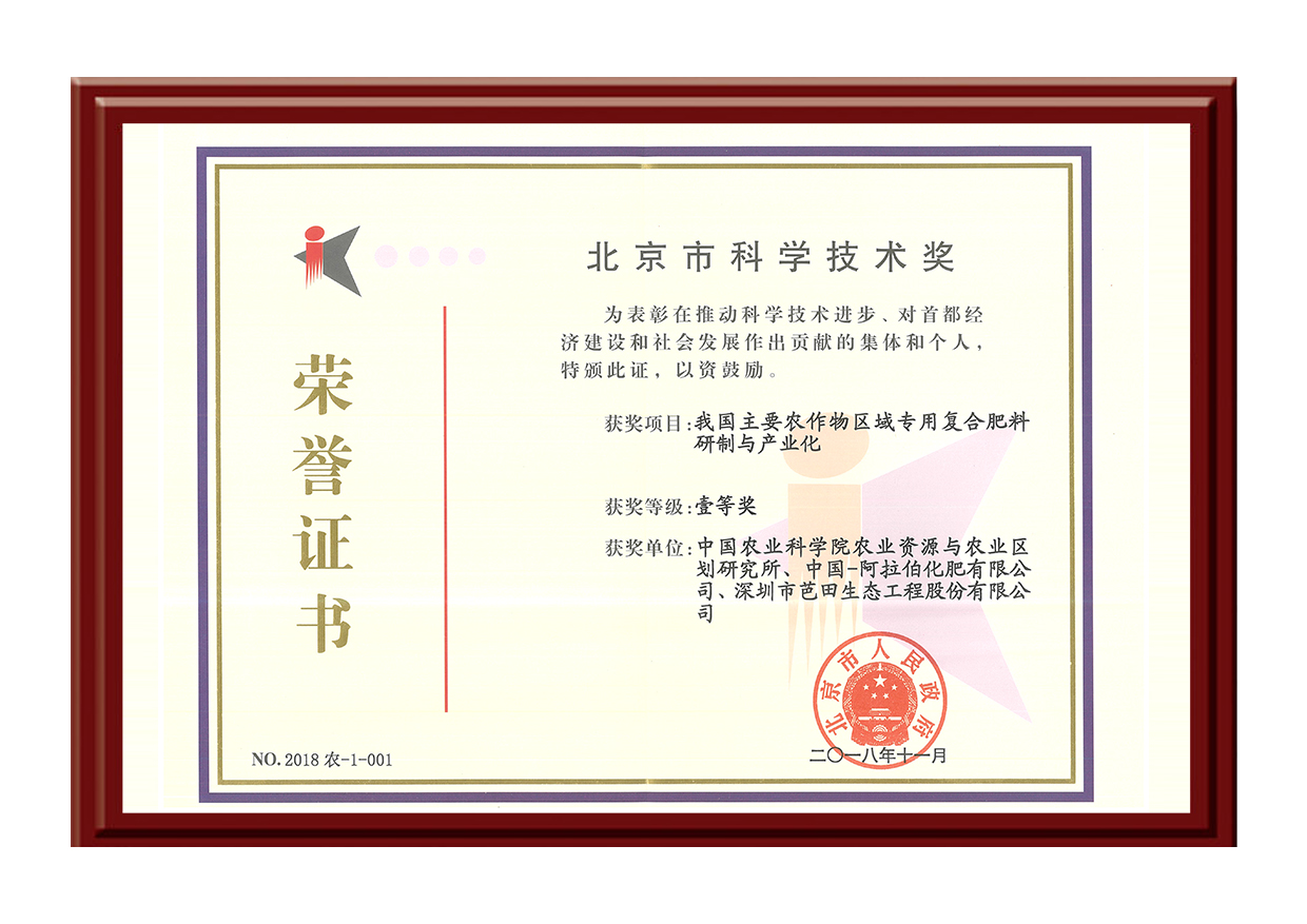 2018年北京市科学技术奖-我国主要农作物区域专用复合肥料研制与产业化一等奖