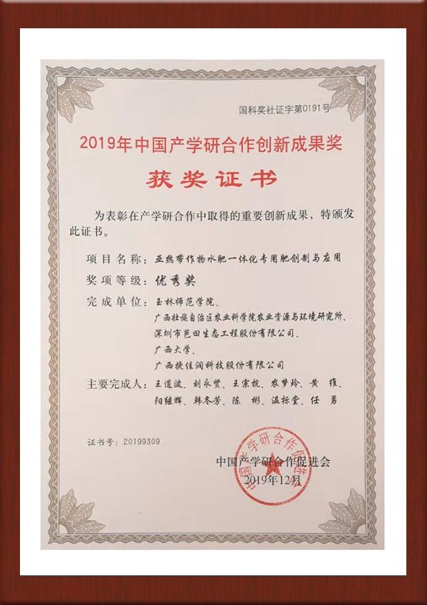 2019年中国产学研合作创新成果奖-亚热带作物 优秀奖