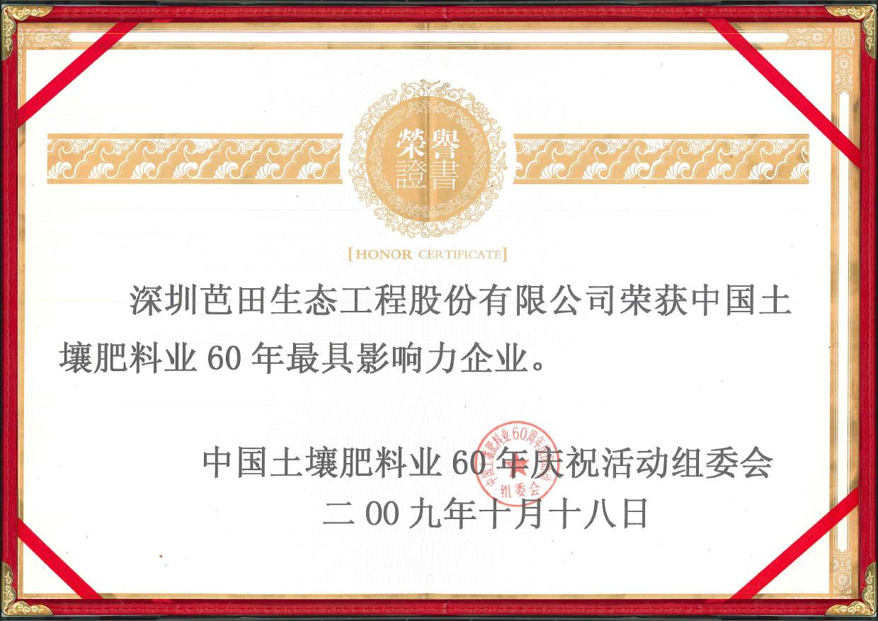 2009年中国土壤肥料业60年最具影响力企业