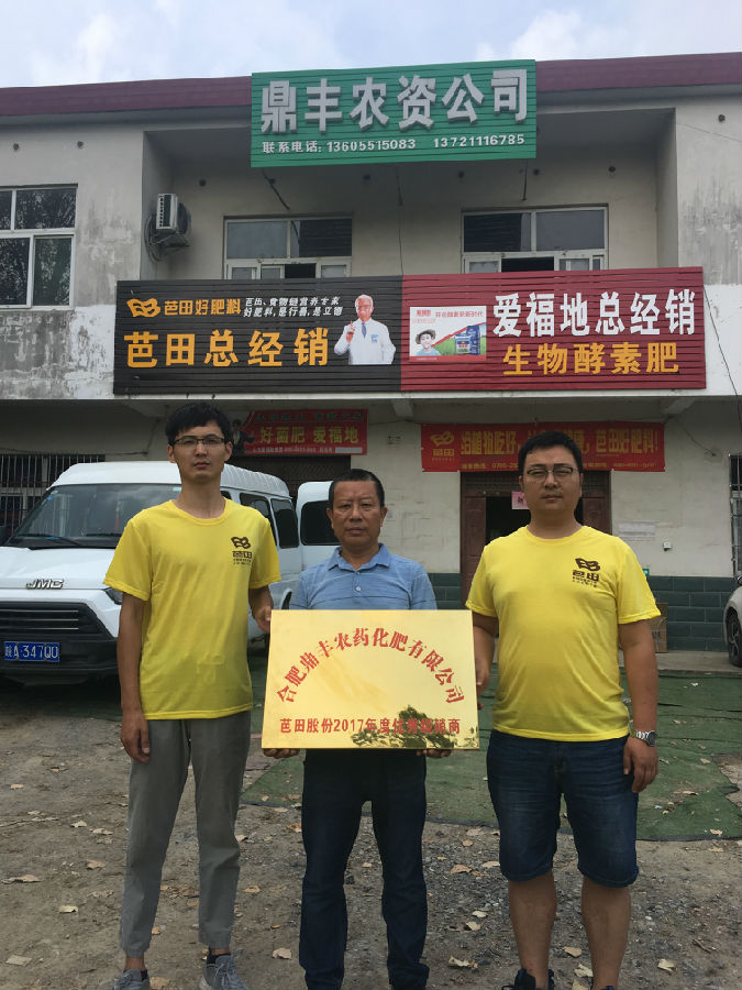 中:合肥鼎丰农资总经理陆安;右:南宫28ng相信品牌力量-南宫ng28注册平台入口-南宫28在线登录-南宫28圈电脑版-南宫28在线注册网站-南宫集团加拿大28-南宫28相信品牌的力量链接-南宫28NG国际-南宫ng娱乐app下载皖中有营销经理高雷