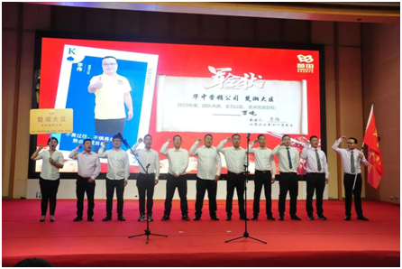 李伟(右一)和营销团队在2023年度营销誓师大会现场